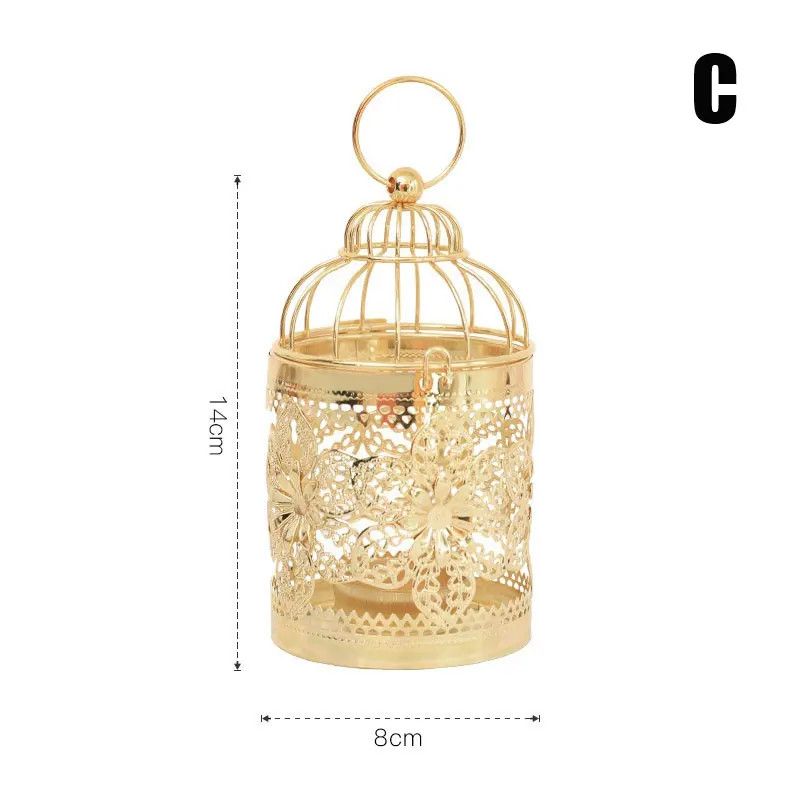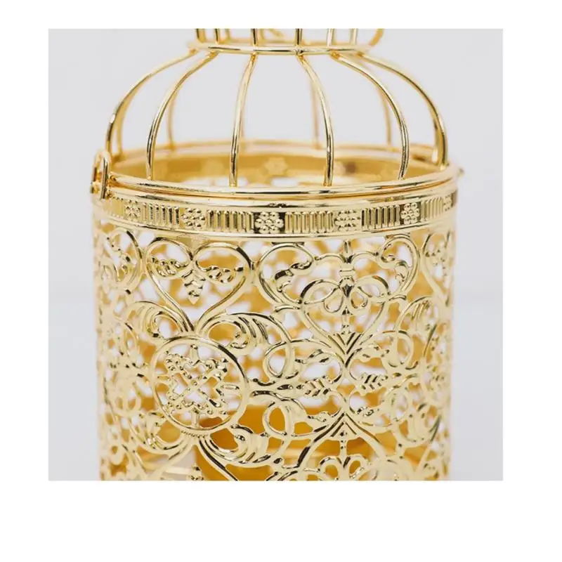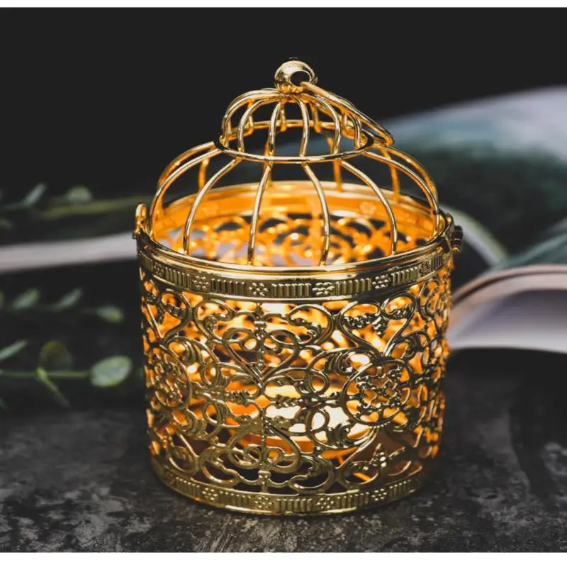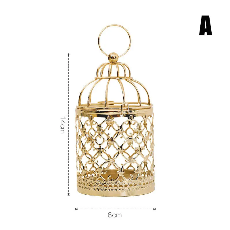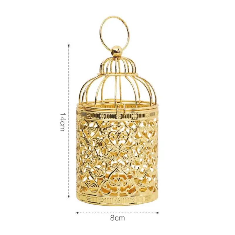 Описание товара:Название продукта: подсвечник птичьей клеткиЦвет: Золотой/белыйРазмер: 14x8 смМатериал: металл