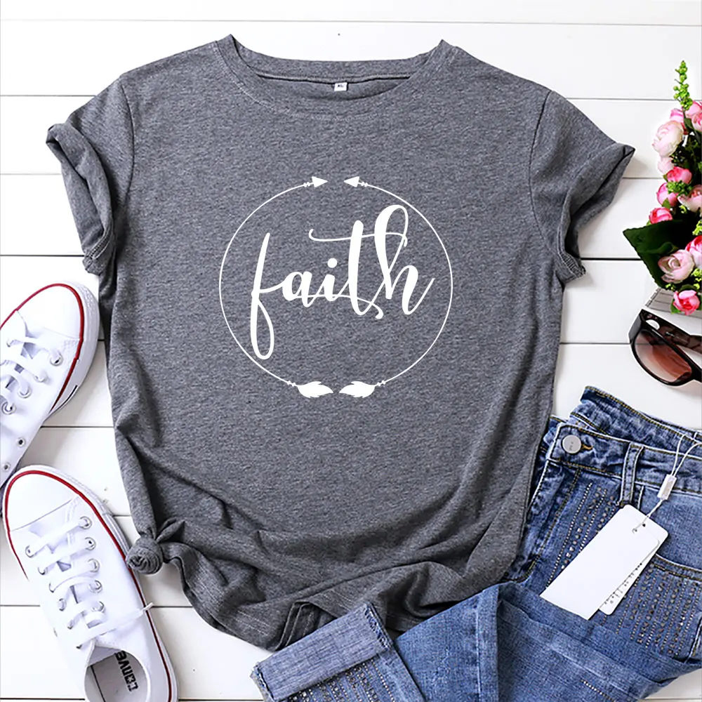 Летняя женская футболка разных цветов, женская одежда с надписью Faith, футболка оверсайз с круглым вырезом и коротким рукавом, женские топы
