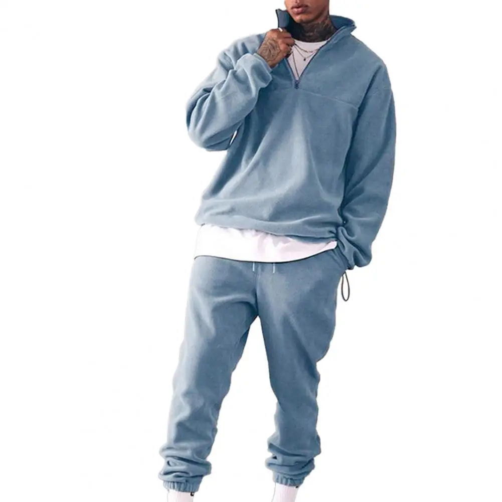Модный спортивный костюм с воротником-стойкой, утепленный мужской спортивный костюм из двух предметов, однотонный теплый костюм для осени и зимы