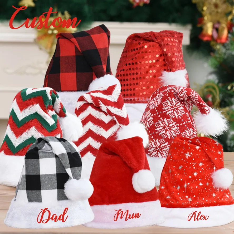 Рождественская шапка на заказ, персонализированная шапка с именем семьи для взрослых и детей, Рождественская шапка, украшение для рождественской вечеринки, товары для нового года