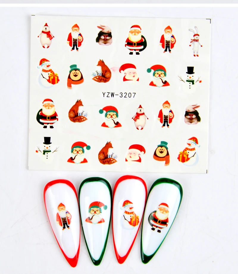 Наклейки для ногтей с водяным знаком, рождественские наклейки с изо...