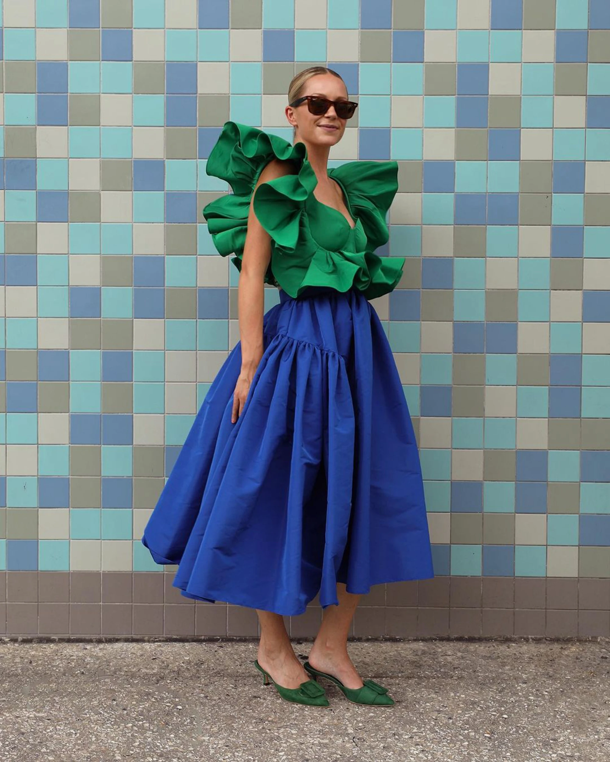 Женская плиссированная юбка с высокой талией, длинная юбка с оборками, до середины икры