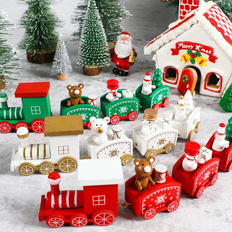 Деревянный поезд, Искусственный Санта-Клаус, Рождественское украшение для дома, Рождественский Декор для стола, рождественские подарки на новый год