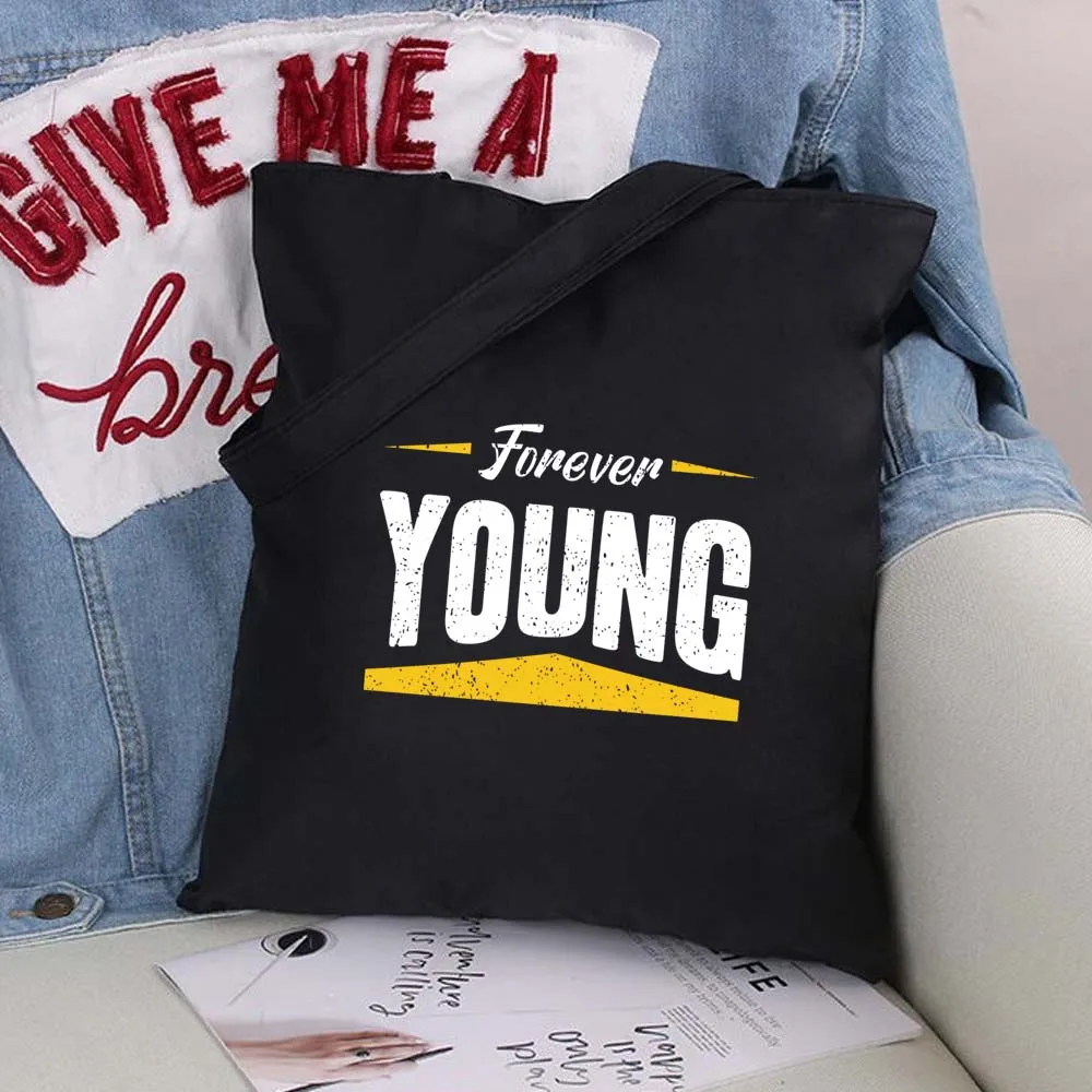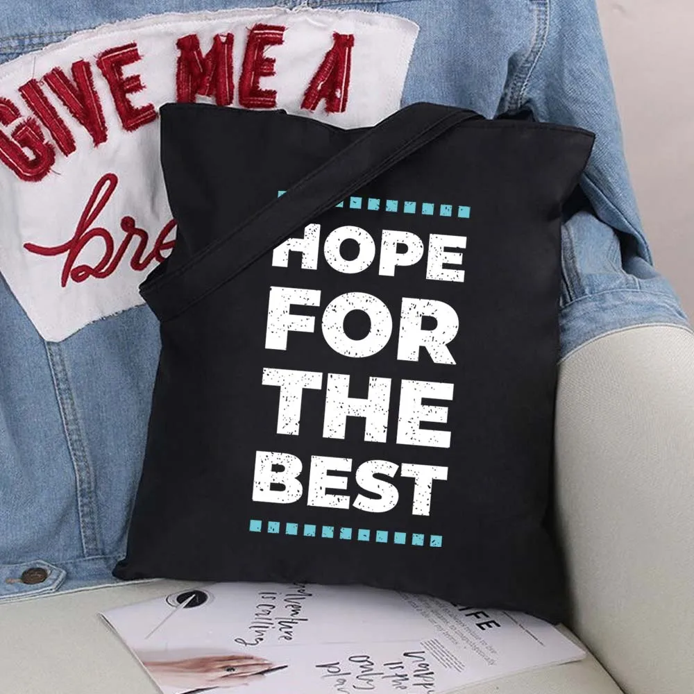 Складная женская сумка-шоппер, ручная сумка из искусственного хлопка, модная черная сумка в минималистичном стиле с принтом, Холщовая Сумка-тоут