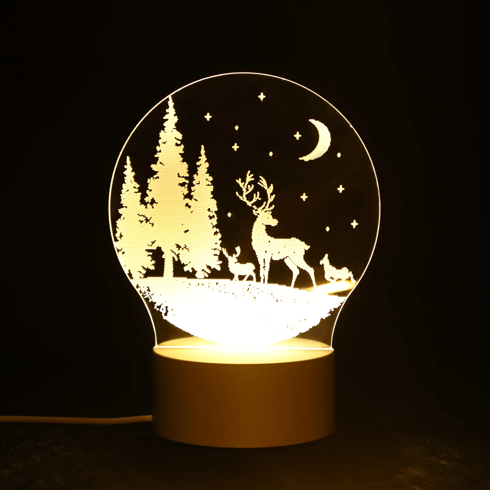 Рождественский Санта Клаус дерево Лось 3D акриловые светодиодные ночные светильники 2021 рождественские украшения для дома Новый год 2022 рождественские подарки