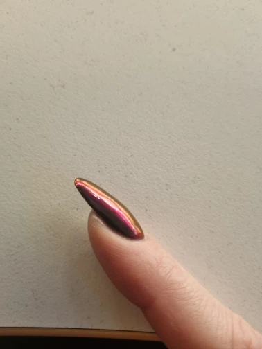 Этот хромовый порошок выглядит как Вишневый шоколадный цвет. Это красиво. Я использовал его на прозрачной основе, и цвет был отличным. Я бы хотел, чтобы он пришел в большем количестве