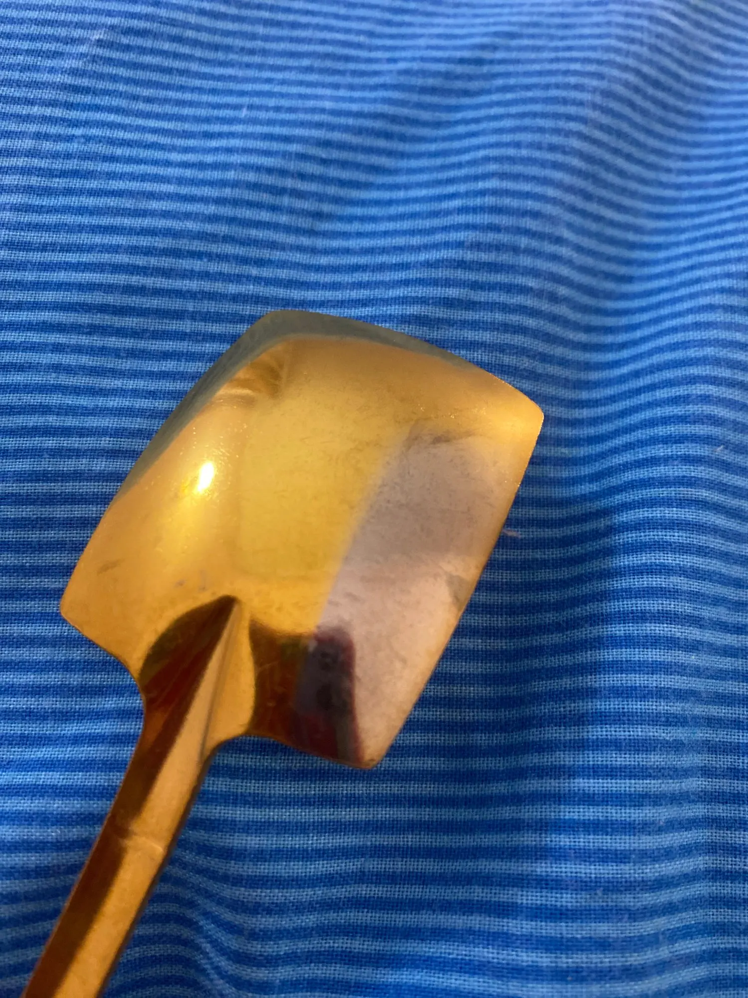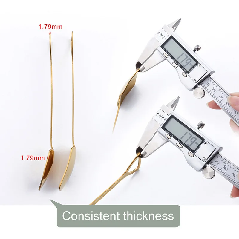 Металл тонкий, сама ложка чуть больше стандартной чайной ложки.