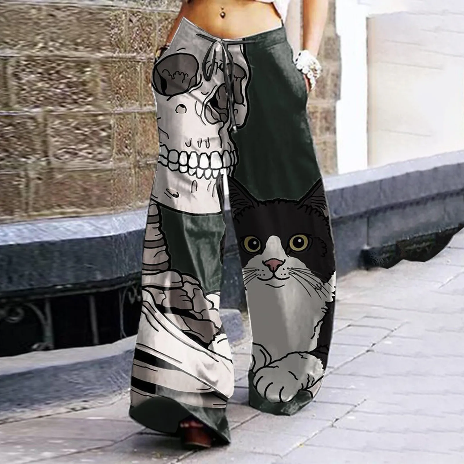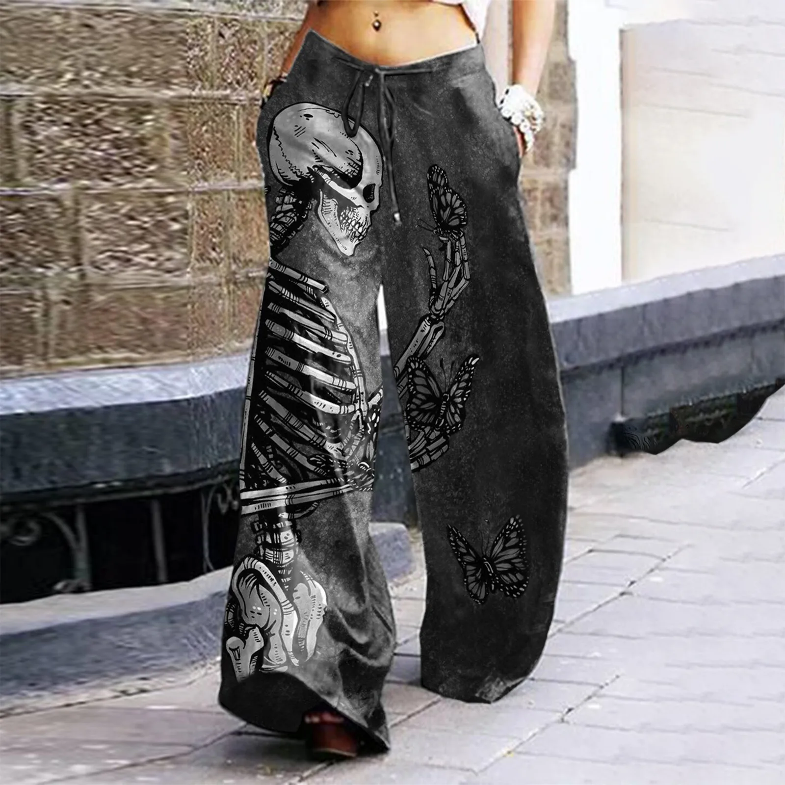 Женские винтажные повседневные свободные широкие брюки с принтом черепа на Хэллоуин
