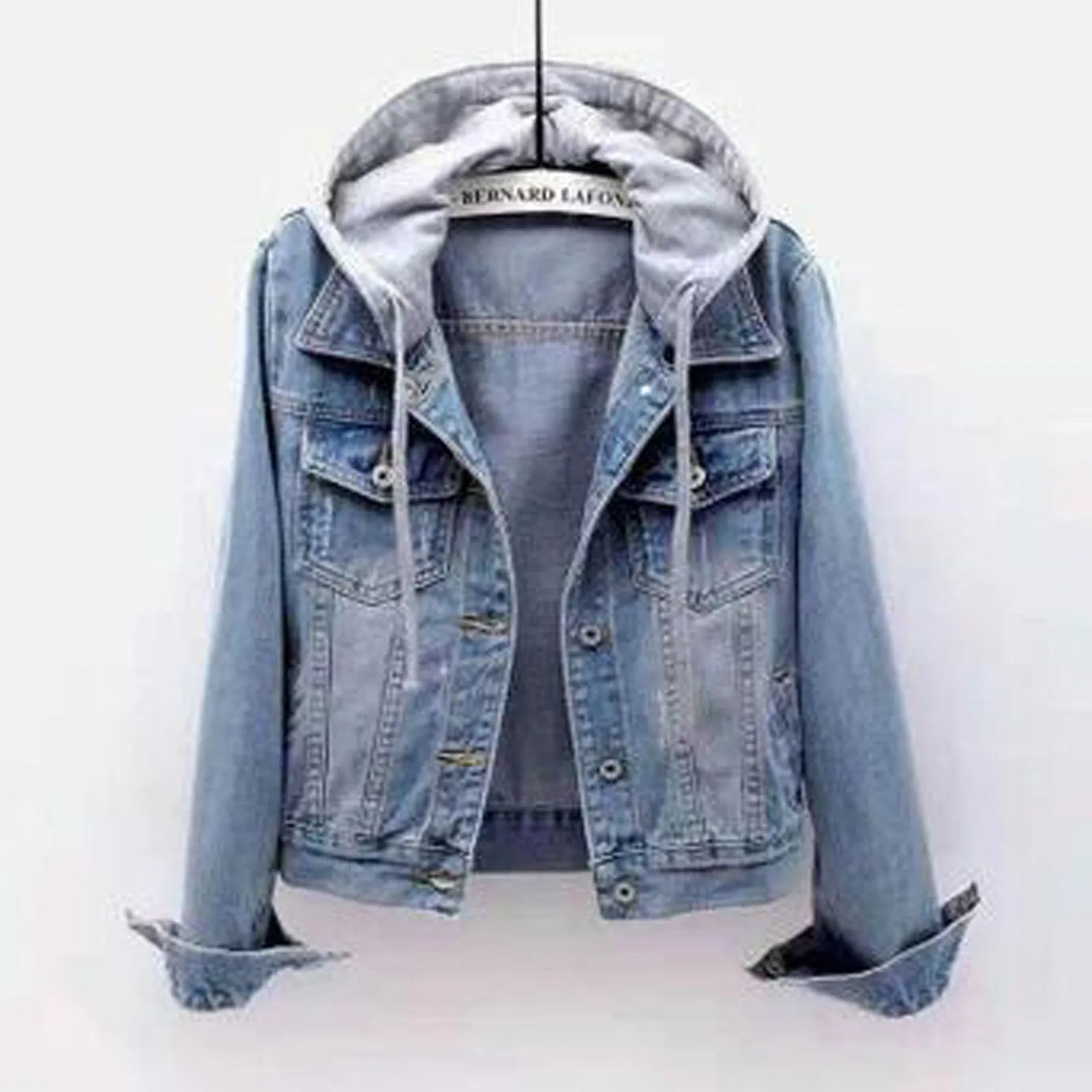 Женская джинсовая куртка, винтажная куртка с капюшоном, пуховое пальто с карманами и пуговицами, модная потертая Повседневная Свободная короткая куртка, верхняя одежда #40