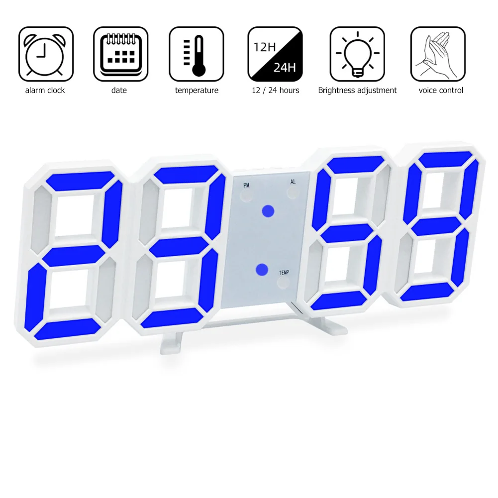 3D светодиодный цифровой будильник, термометр с датой времени, ночник, дисплей, датчик голоса, настенные часы, подвесные настольные часы, календарь, электронные часы, автоматическая подсветка, украшение дома