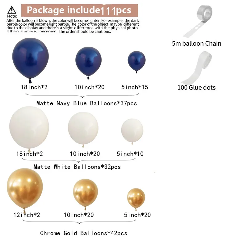 Посылка со списком2 шт. 18 дюймов матовый Темно-синие воздушные шары2 шт. 18 дюймов Matte White воздушные шары2 шт. 12 дюймов хромированная золотые шары15 шт 5 дюймов матовые темно-синие воздушные шары20 штук 10 дюймов матовый Темно-синие воздушные шары10 шт 5 дюймовые матовые белые воздушные шары20 шт 10 дюймовые матовые белые воздушные шары20 штук 5 дюймов хромированная золотые шары20 штук 10 дюймов хромированная золотые шары1 шт. 5 м цепочка для воздушных шаров1 упаковка точечного клея