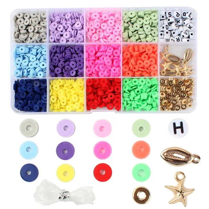 Плоские круглые полимерные бусины из глины, набор шармов, эластичная веревка, карабин, коробка для самостоятельного изготовления ювелирных изделий, браслеты, серьги
