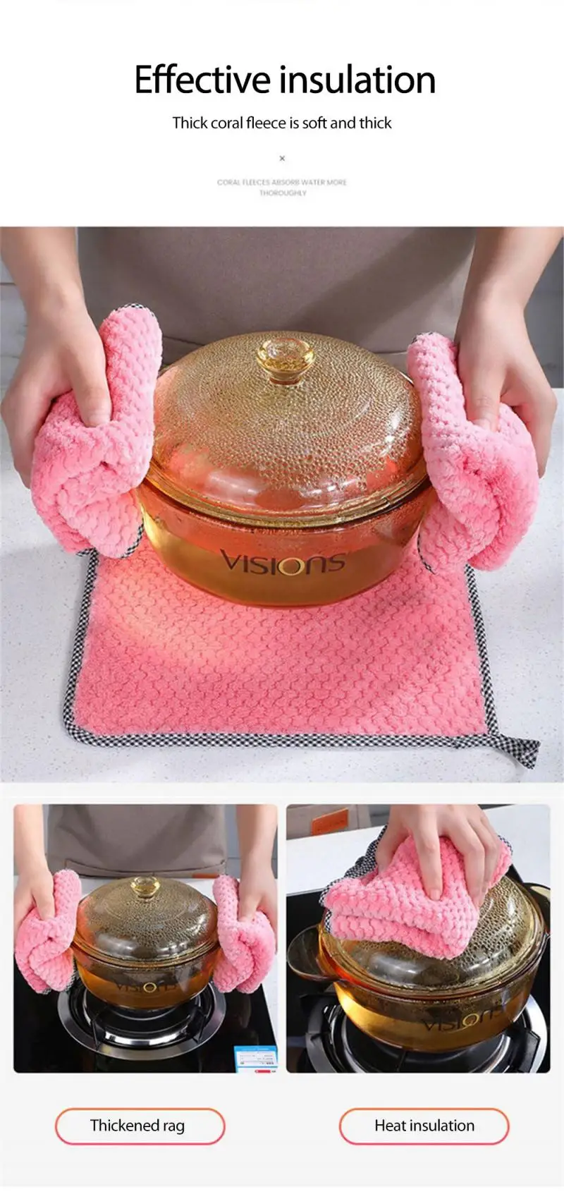 Антипригарное домашнее полотенце для уборки, полотенце для очистки от ворса, коралловый флис, двухсторонняя вешалка для пальто, кухонный инструмент, нежирная ткань для посуды, Прямая поставка.