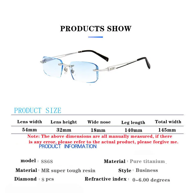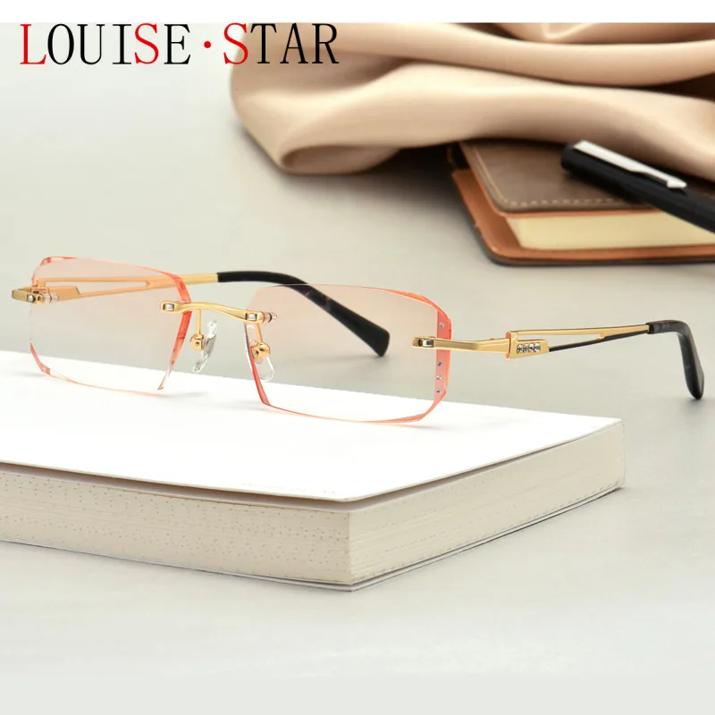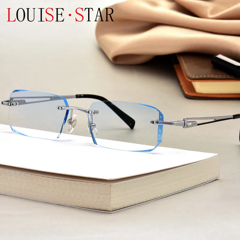 Солнцезащитные очки Мужские, из чистого титана, с защитой от излучения, для близорукости, без оправы, с диоптриями от-1,0 до-6