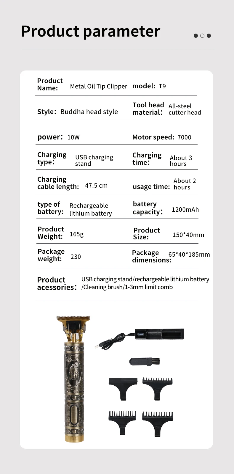 Профессиональный триммер для волос SPESHE, электрическая машинка для стрижки бороды T9, беспроводной электрический триммер для волос для мужчин