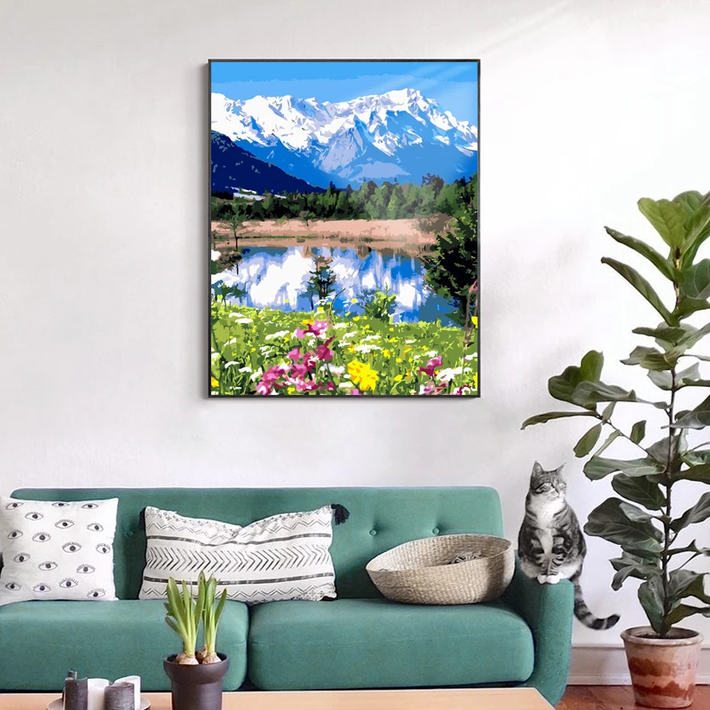 Набор для рисования по номерам на гору и воде, 19,7x15,7 дюйма, 24 цвета