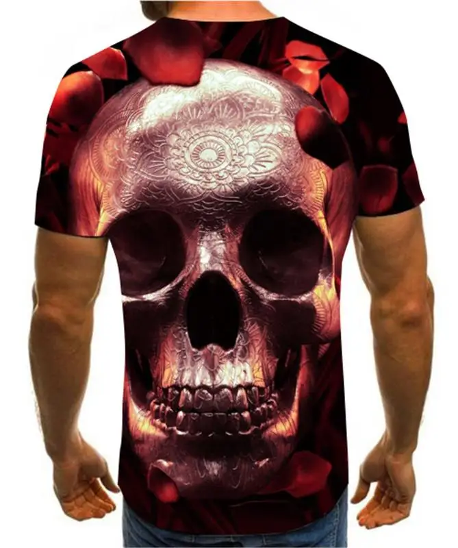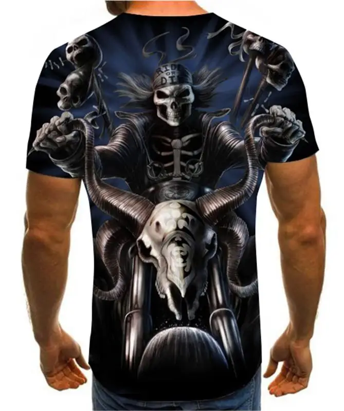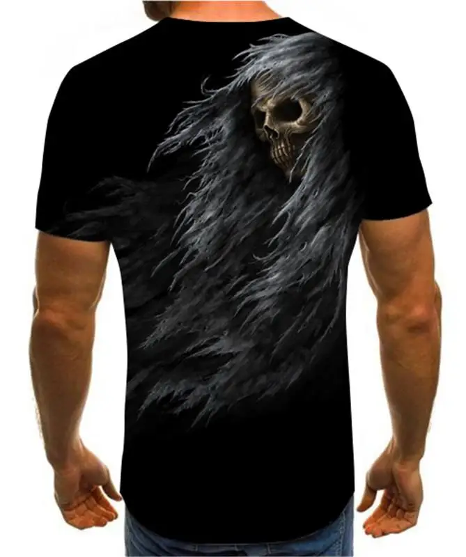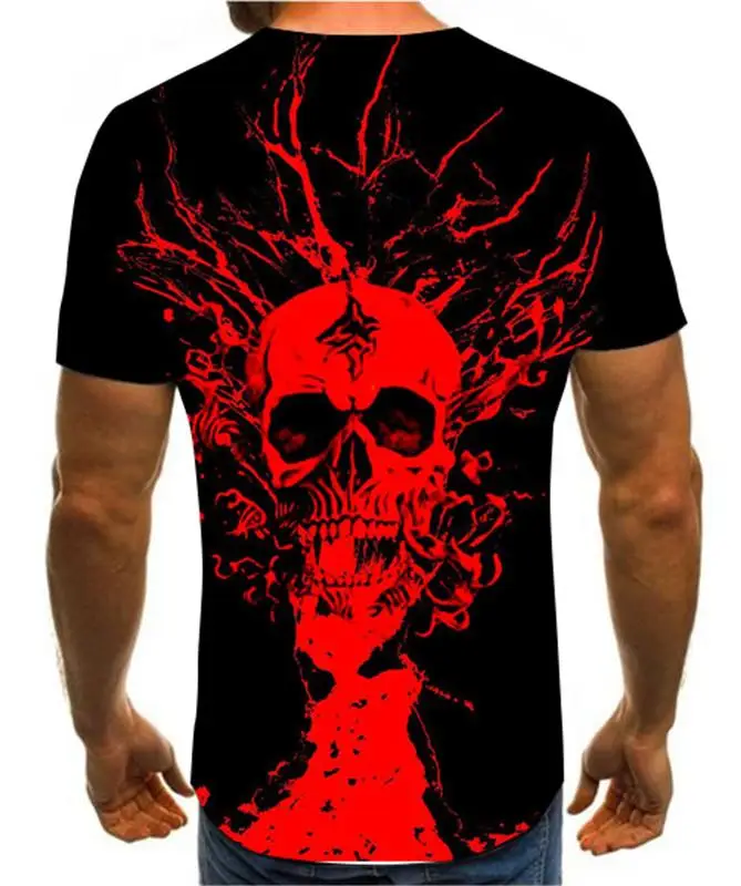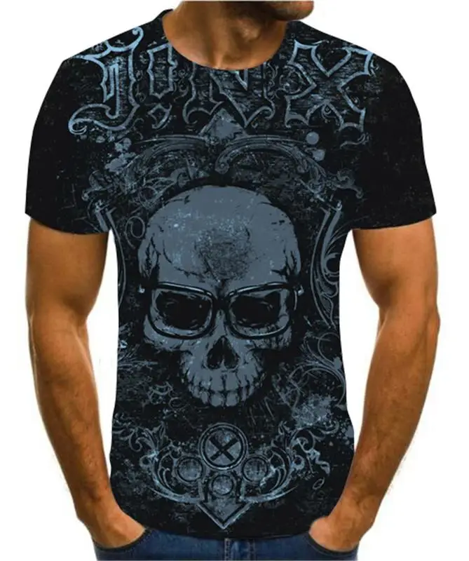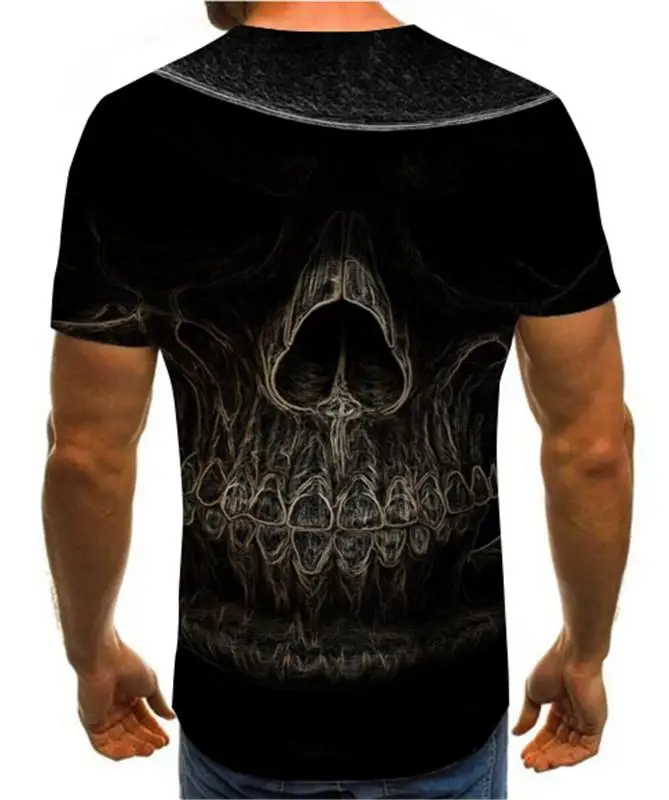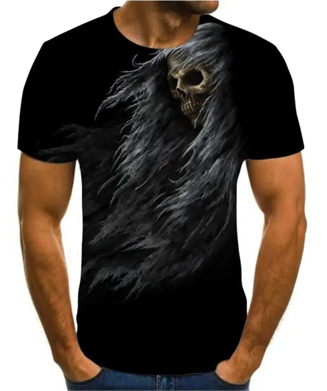 Летняя мужская футболка, новинка, футболка с 3D принтом, Мужская футболка с рисунком черепа, летняя черная футболка с круглым вырезом, футболка