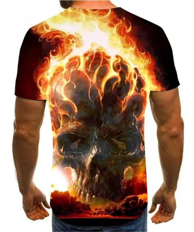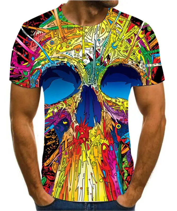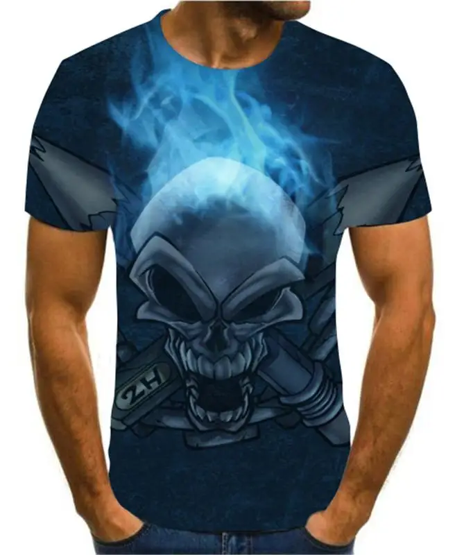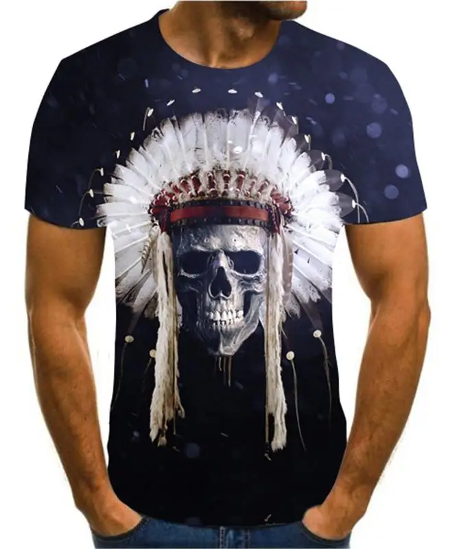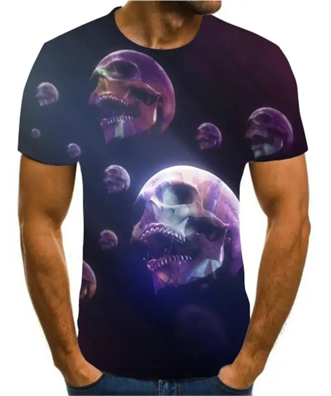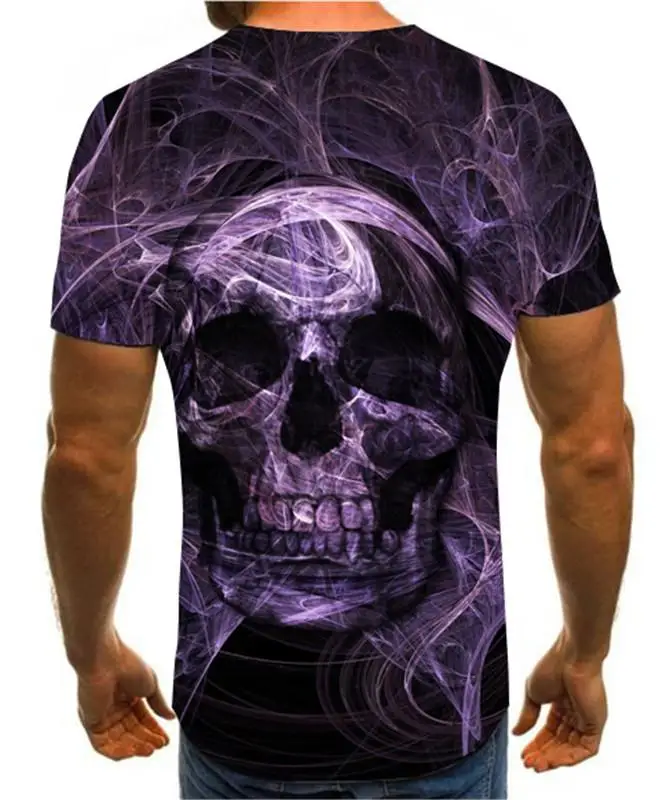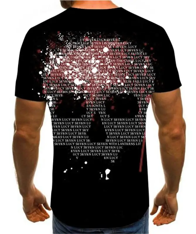 Летняя мужская футболка, новинка, футболка с 3D принтом, Мужская футболка с рисунком черепа, летняя черная футболка с круглым вырезом, футболка