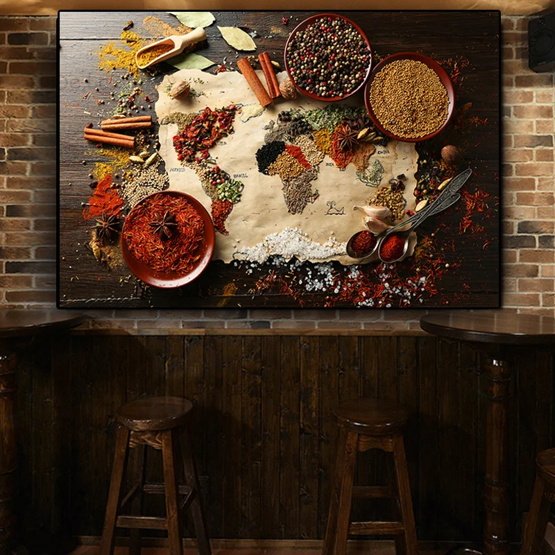 Постеры скандинавские с рисунком специй и ложек, кухонная Картина на холсте, Настенная картина для украшения ресторана