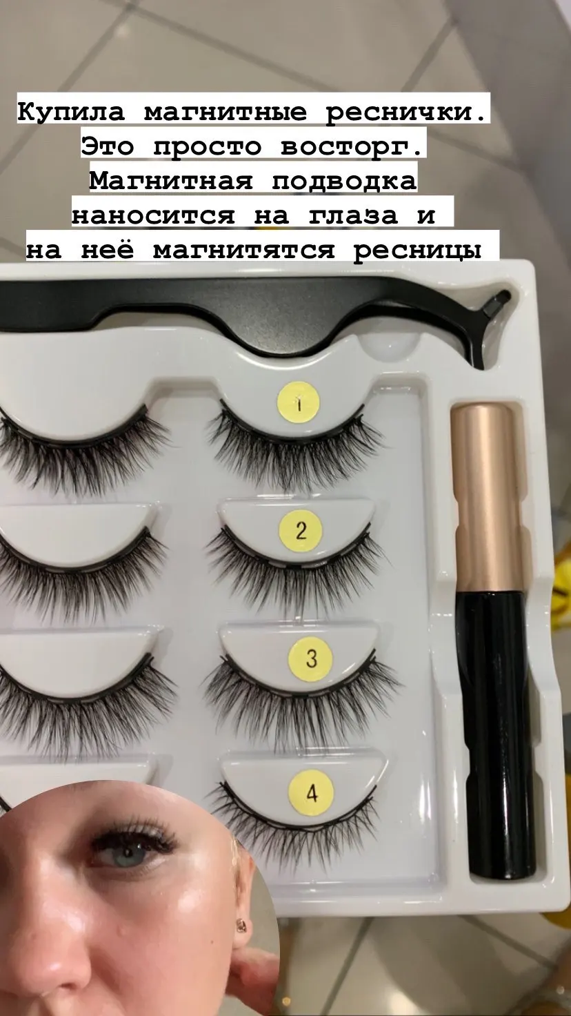 Порадовала быстрая доставка, всего 5 дней до Анапы. Получение на кассе сетевого магазина тоже очень удобно, т.к. можно выбрать пункт выдачи у самого дома и получить можно с 8 до 23 часов. К магнитной подводке нужно приноровиться. С первого раза получилось неровно и сохнет дольше, чем я думала, поэтому отпечаталась на верхнем веке, пришлось удалять. А вообще эффектно! Всего за 15 минут взгляд преображается. После примагничивания ресниц нужно нанести тушь, чтобы свои ресницы слились с накладными. Держатся хорошо, лёгкие, довольно удобны в носке. Носите с удовольствием!