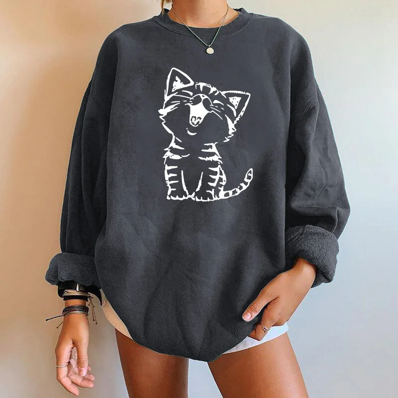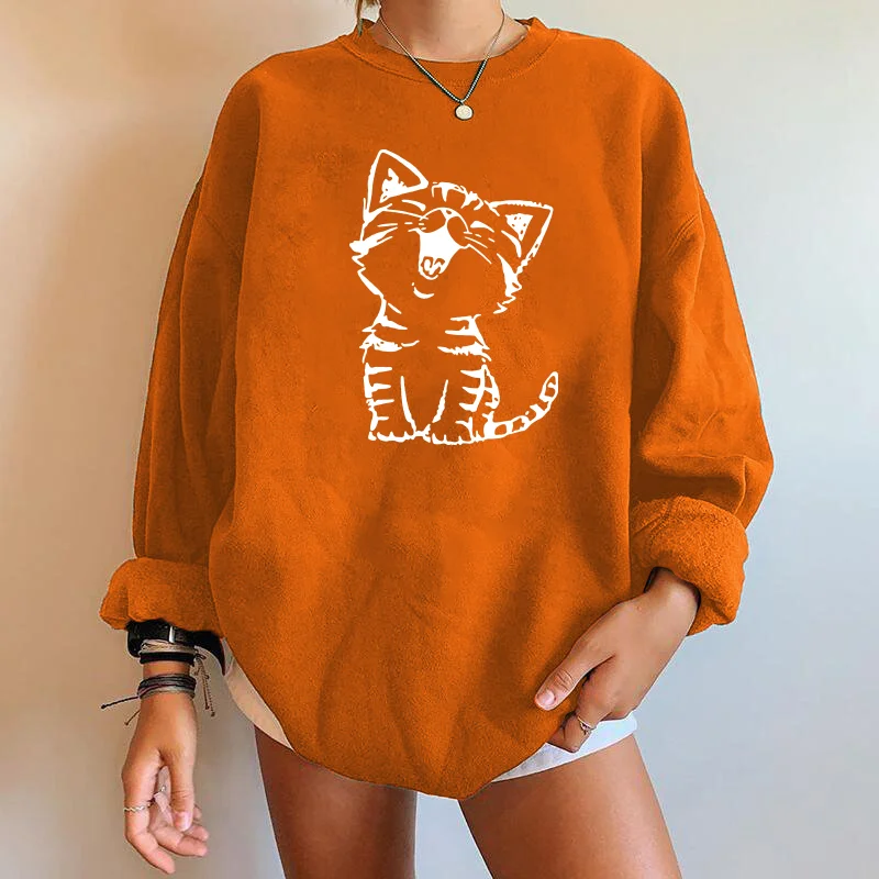 Женские свитшоты в стиле аниме Харадзюку с принтом милого кота, пул...