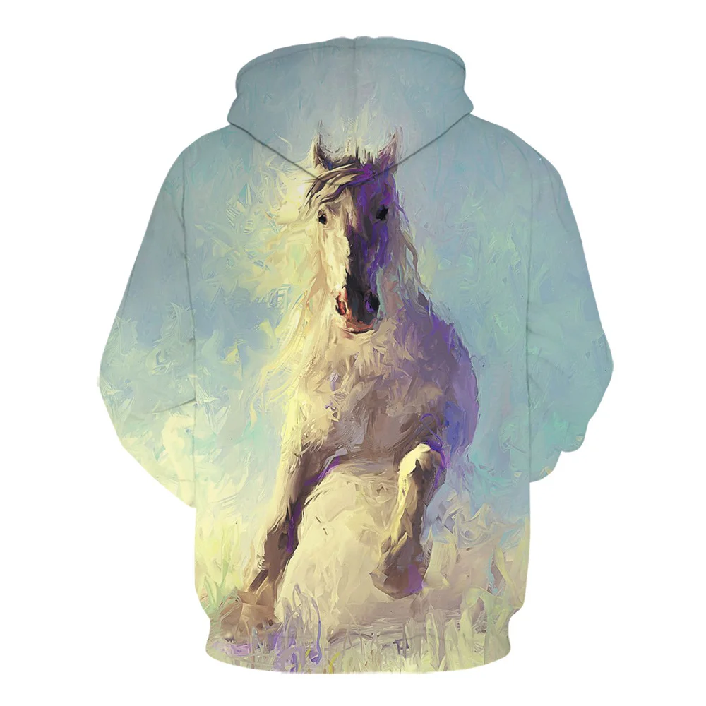 Толстовка для мужчин и женщин, пуловер с рисунком белых лошадей, жи...