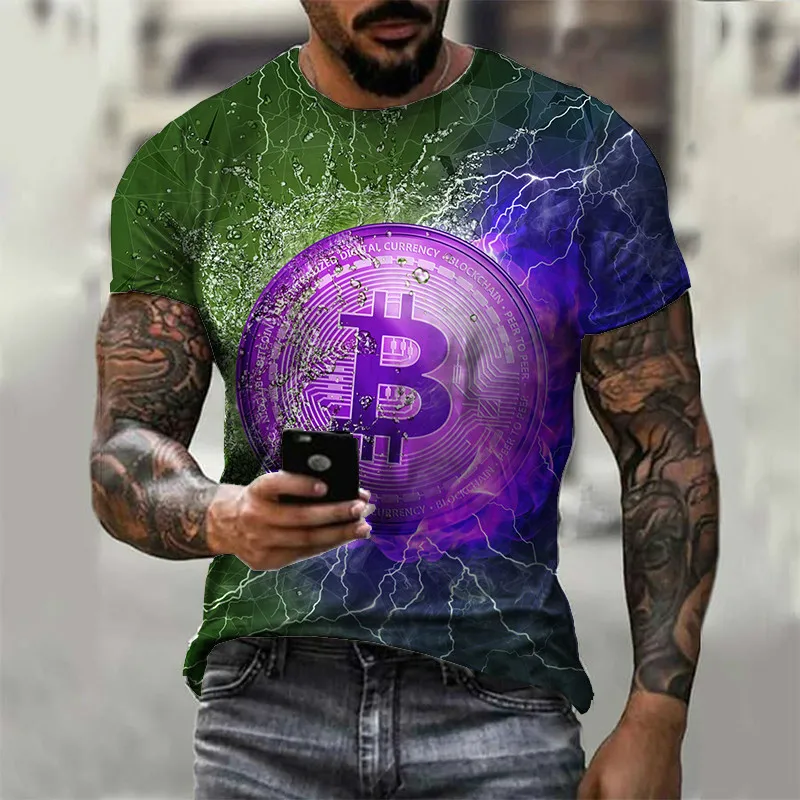 Мужская футболка с принтом биткоина, Свободный пуловер с коротким р...
