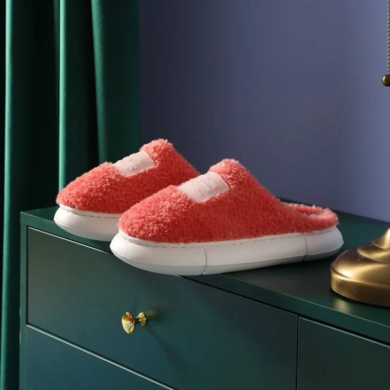 Шлепанцы женские зимние водонепроницаемые, меховые плюшевые шлепанц...