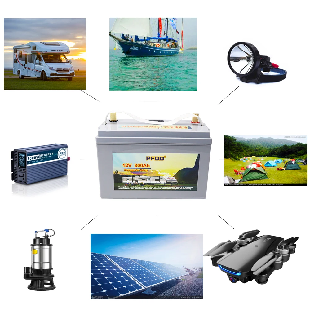 12 В 300 Ач LiFePO4 Аккумуляторный блок с BMS литиевым питанием, батареи для гольф-мобиля, RV Campers Off-Road Off-grid Solar Energy With Charger