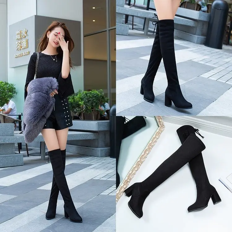 Новинка 2021, женские сапоги, Черные Сапоги выше колена, привлекательные женские осенне-зимние сапоги до бедра