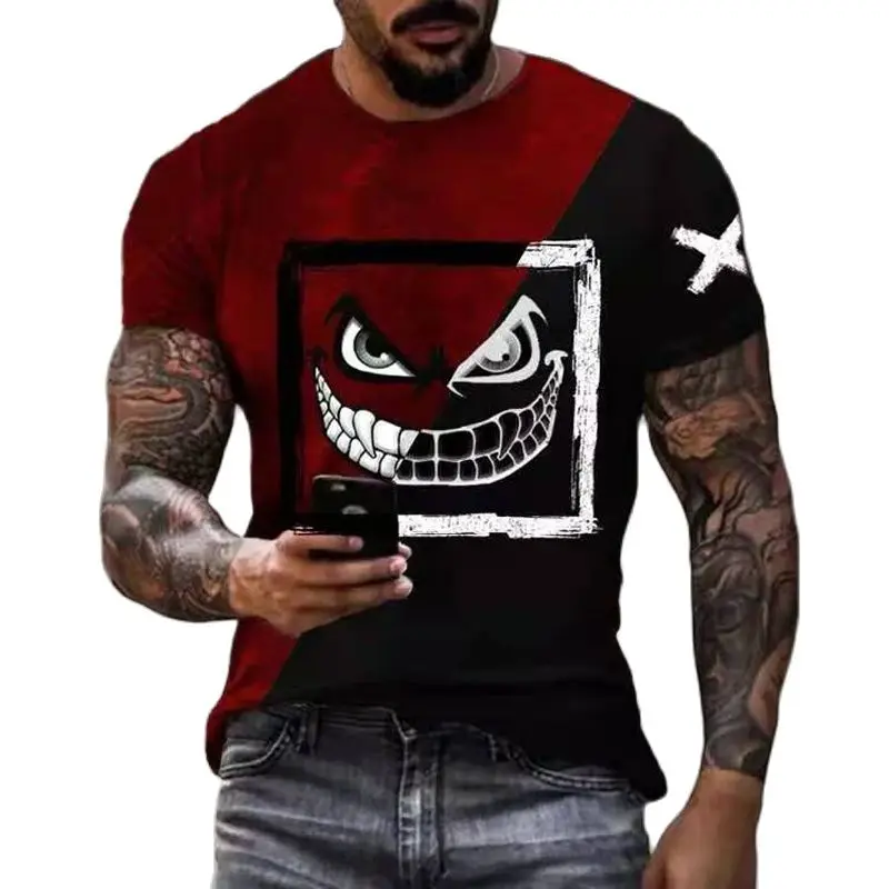 Повседневная мужская летняя футболка с 3D-принтом черепа и ужасов, ...