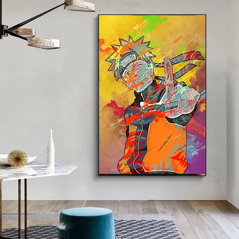 Японское аниме, граффити Наруто, Картина на холсте Наруто и Саске, ...