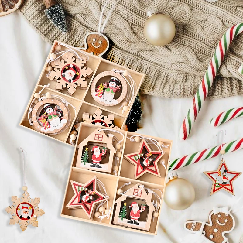 12 шт.компл. деревянная подвеска, рождественские украшения для елки...