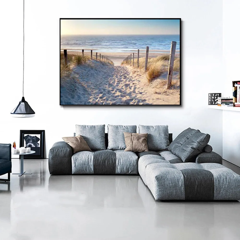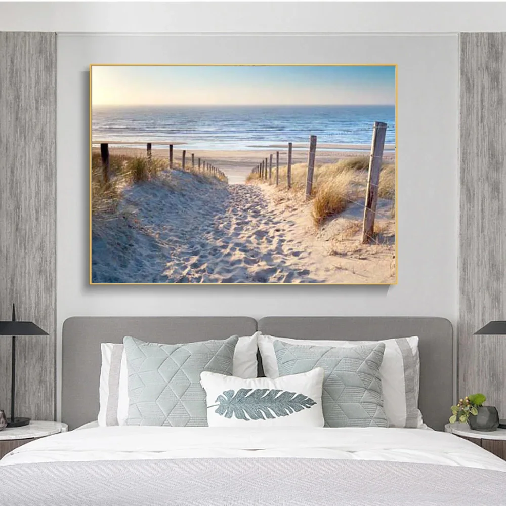 Постер на холсте с изображением океана и скандинавского пейзажа, Настенная картина с принтом морского пляжа, травы, украшение для гостиной