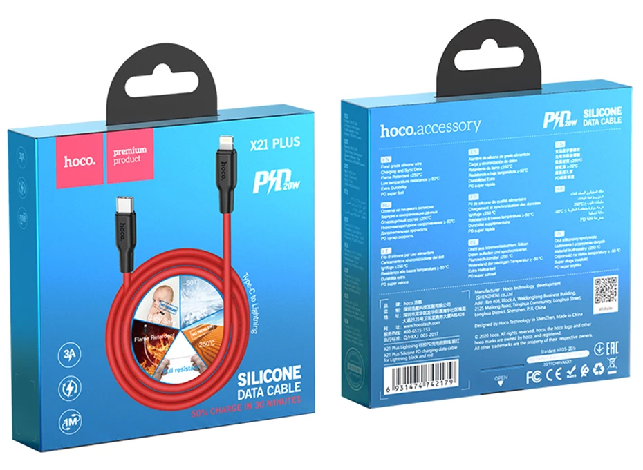 Силиконовый кабель HOCO PD Type C для iPhone 13, 12 Pro, Xs Max, XR, Macbook, 20 Вт, PD 3A, шнур для быстрой зарядки и синхронизации данных, кабель USB C