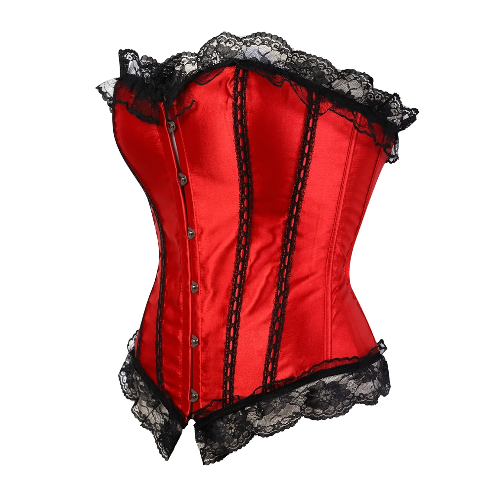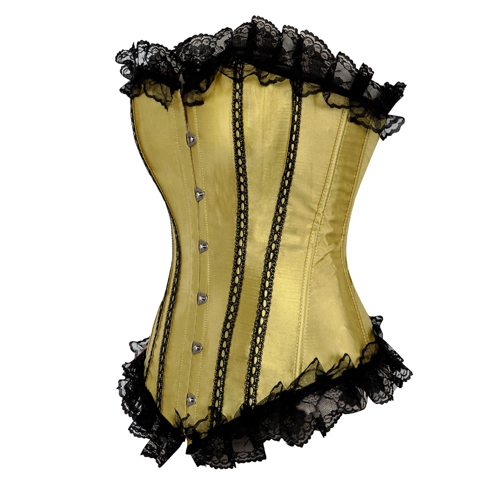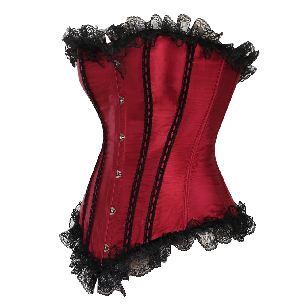 Корсеты для женщин, сексуальные готические корсеты с кружевной отделкой, атласный корсет, костюмы со стальными косточками, Полосатое белье, размера плюс