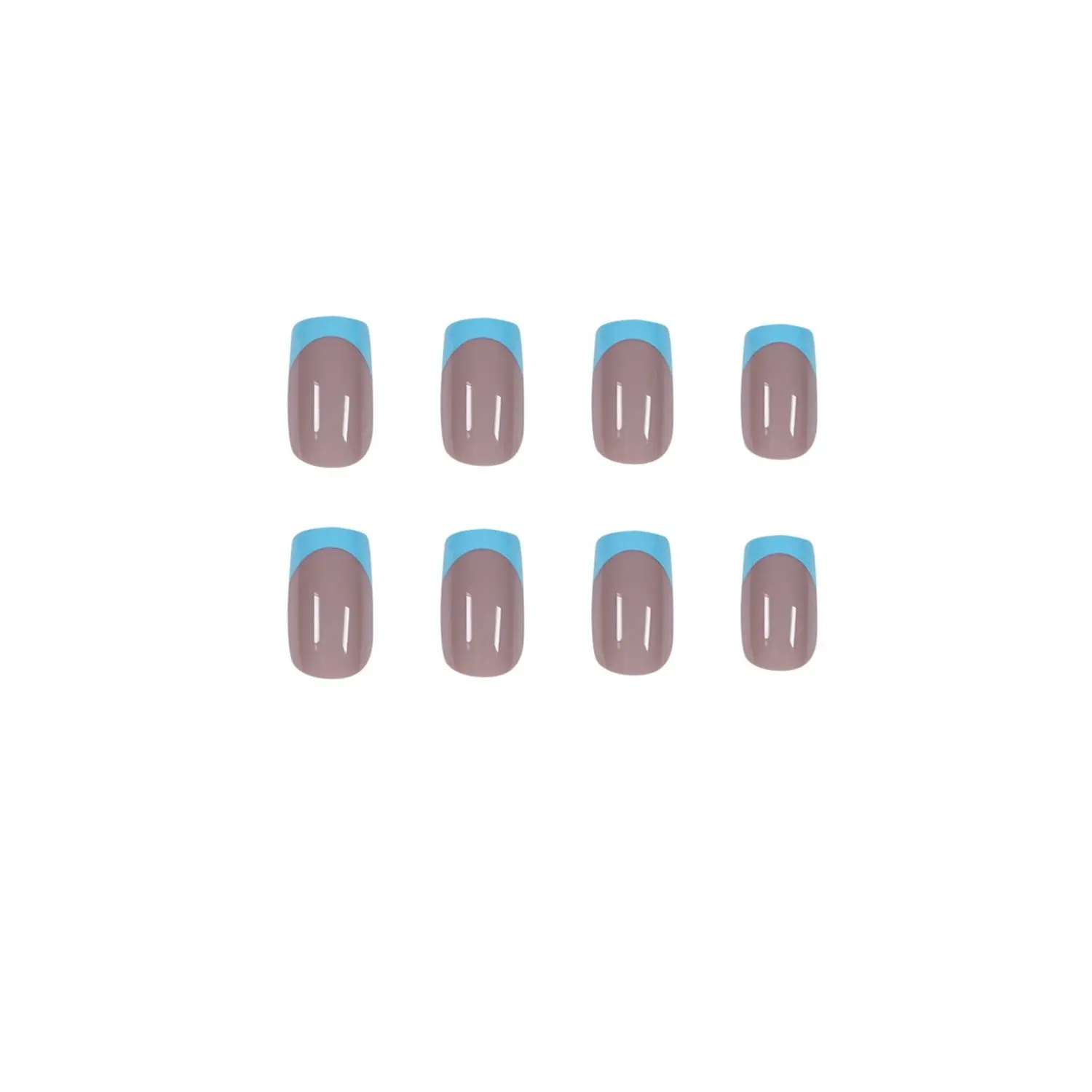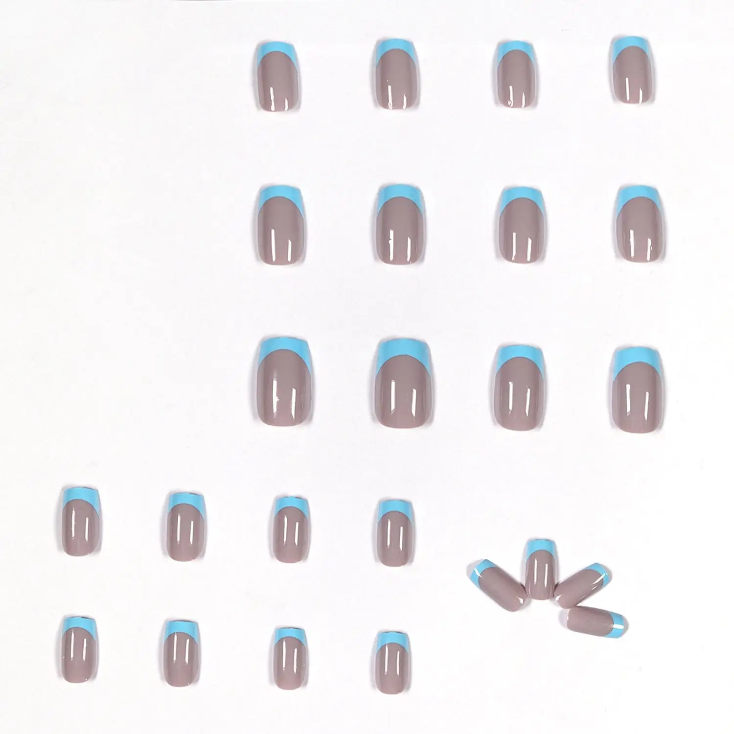 Накладные ногти, короткие, французские, сине-серые, квадратные, с клеем, 24 шт.
