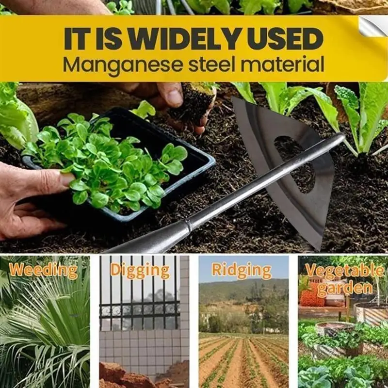 Точка пули: 1. Легко и без усилий прополка и рыхление почвы для посадки цветов и овощей удобны и просты в использовании. 2. Сделать прополка заваренной полой конструкции легко войти в почву без почвы в середине. 3. Утолщенный стальной стержень более прочный. Может Побить Твердые плащи или упрямые сорняки. 4. Широкое Использование: домашнее прополка/отвод/scarification/ seeding/Строгание и т. д. 5. Процесс ковки: используя традиционный процесс закалки ковки без какой-либо обработки антикоррозийной полировки, поверхность будет немного грубой, но это не повлияет на использование.