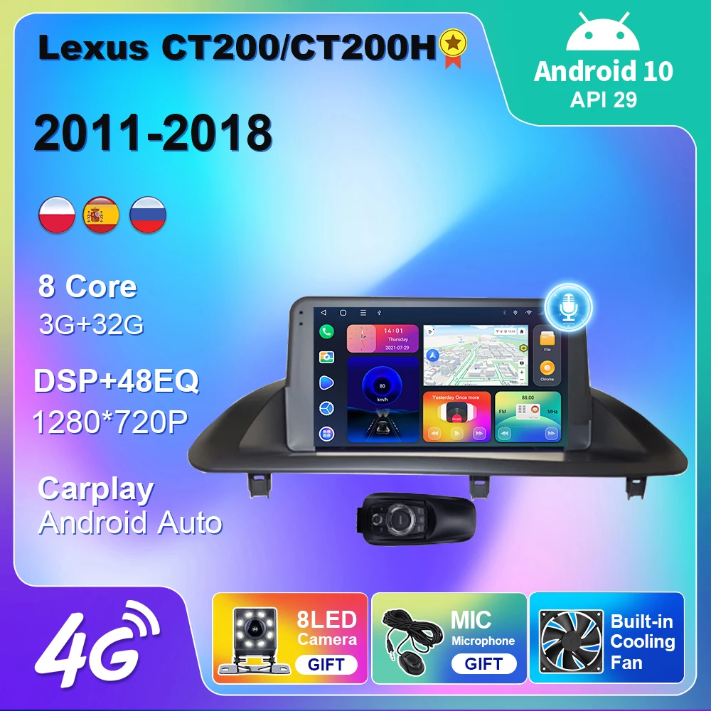 Автомагнитола 2 Din для Lexus CT CT200, CT200h, 2010-2018 г., 4G, Wi-Fi, DVD-проигрыватель, GPS, Carplay