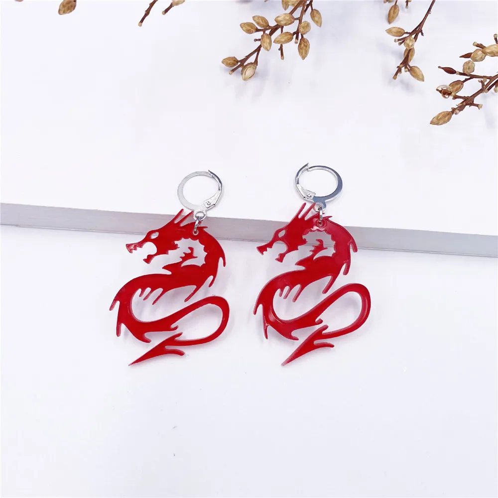 Панк акриловых подвеска китайский дракон серьги для женщин высокока...
