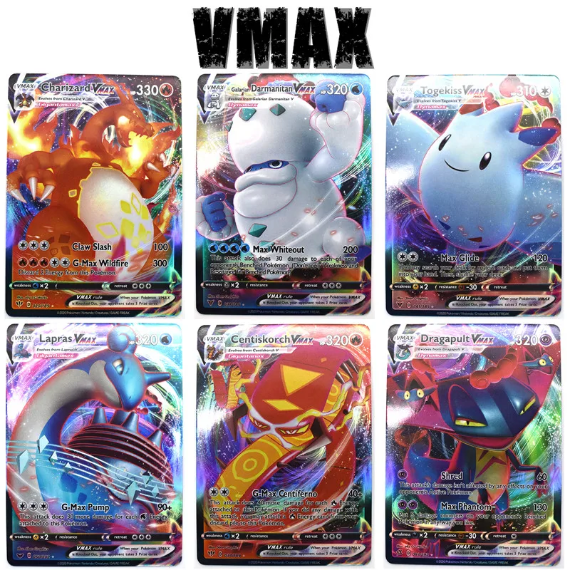 100 шт. карты покемона, аниме блестящие карты томии, игра TCG, VMAX...