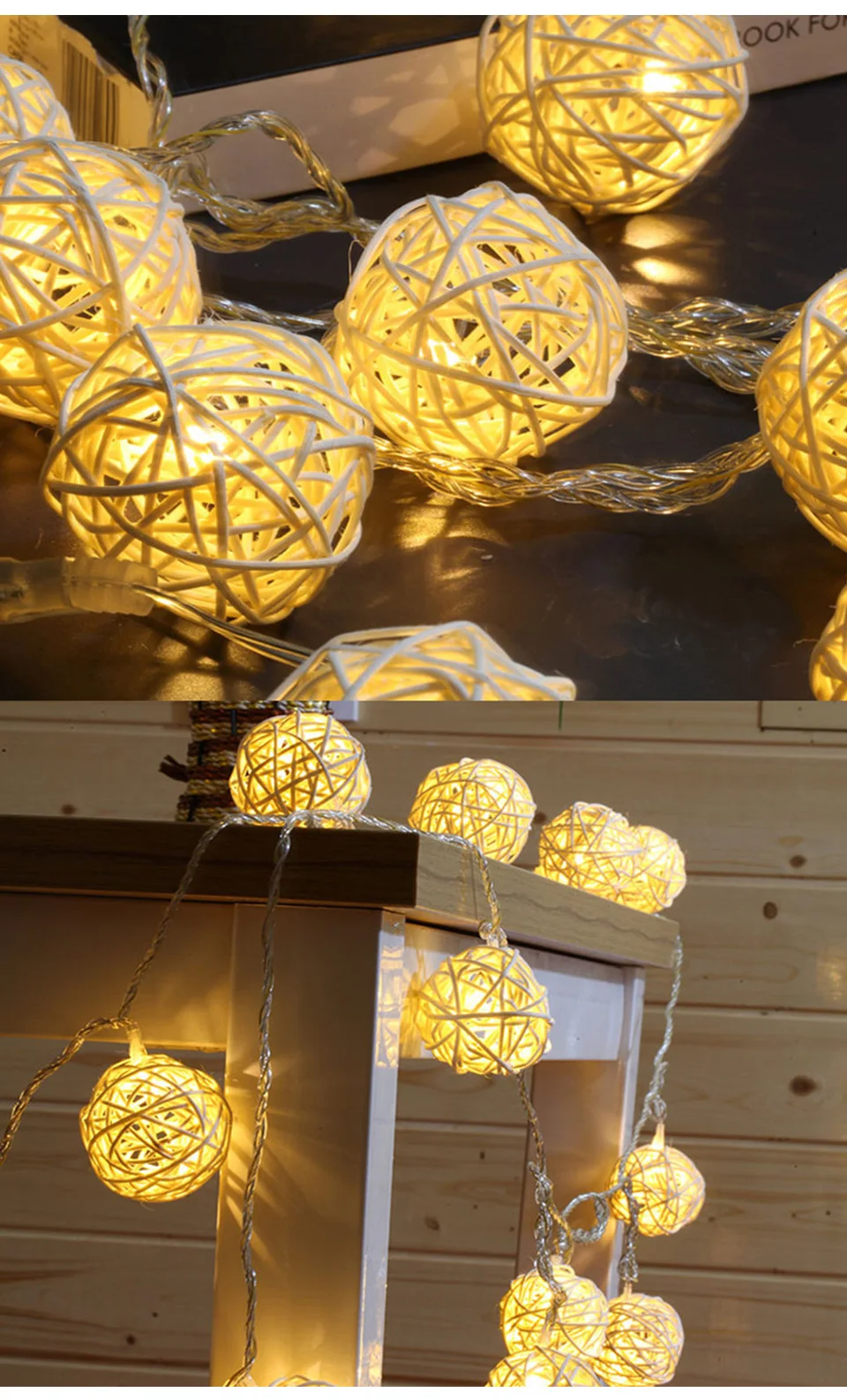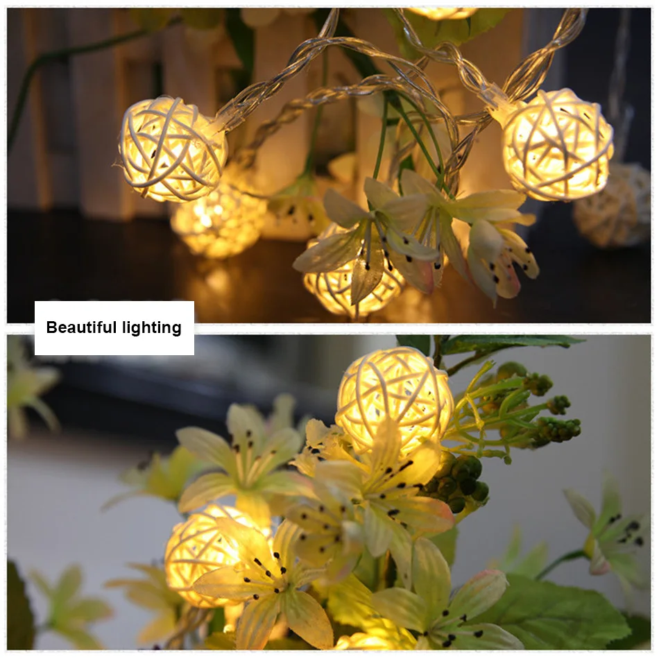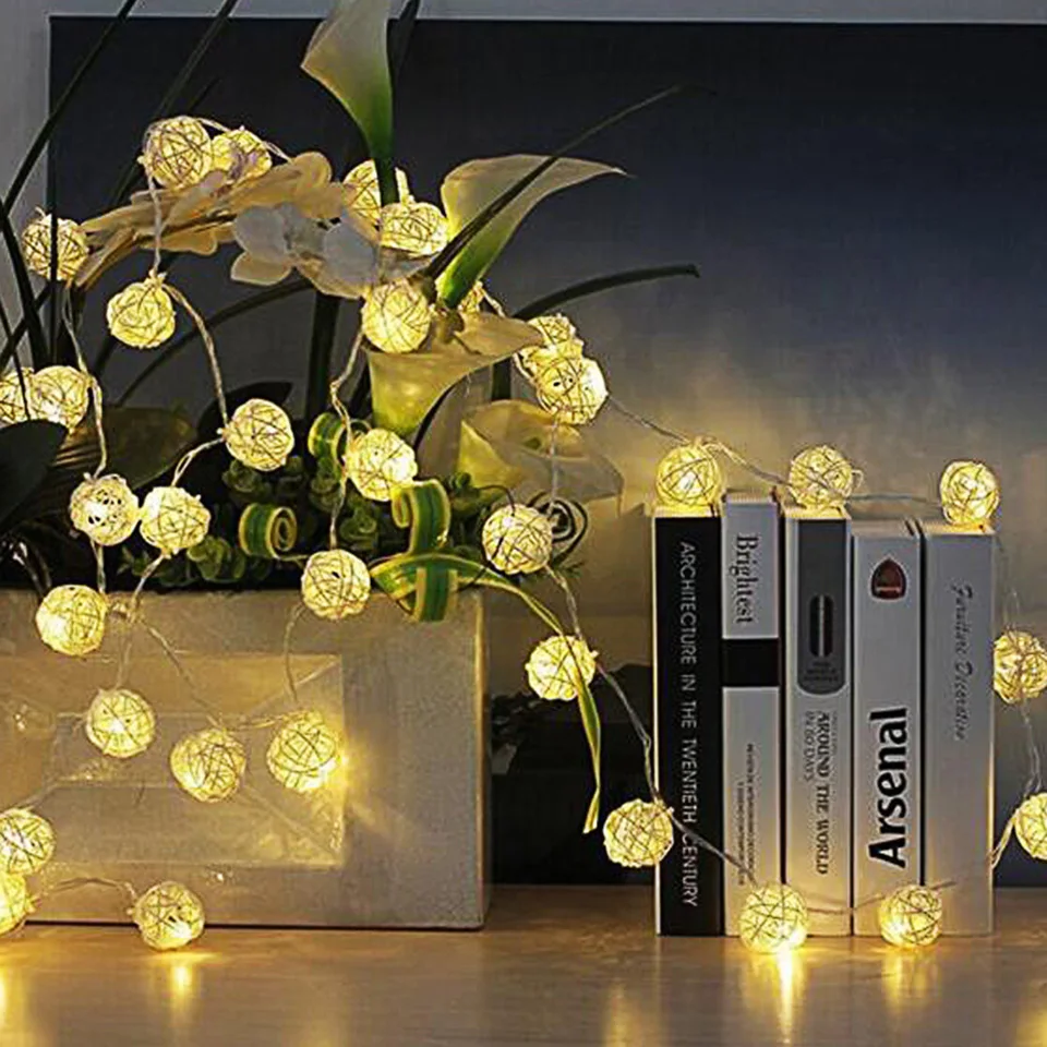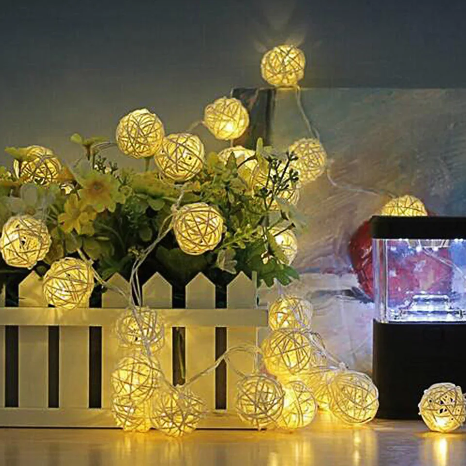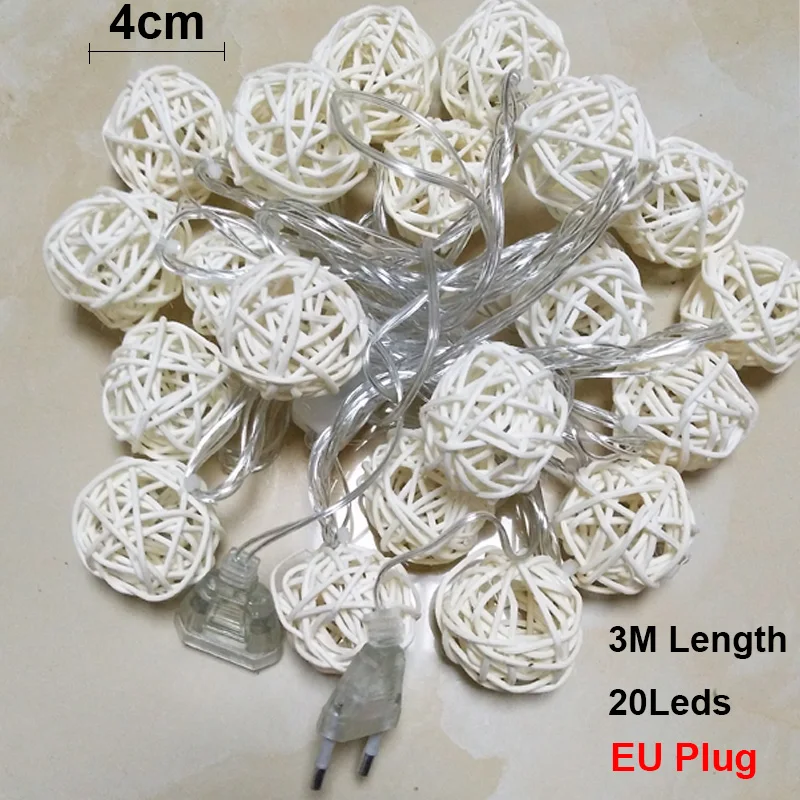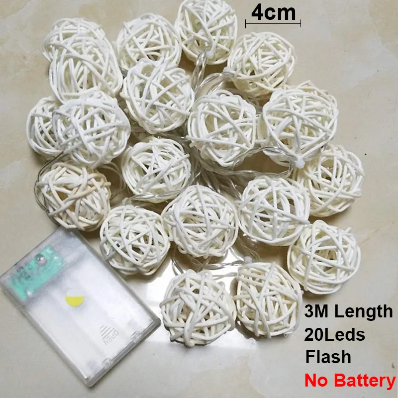 Рождественская Декоративная гирлянда с шариками из ротанга, 3 м, 20 светодиодный