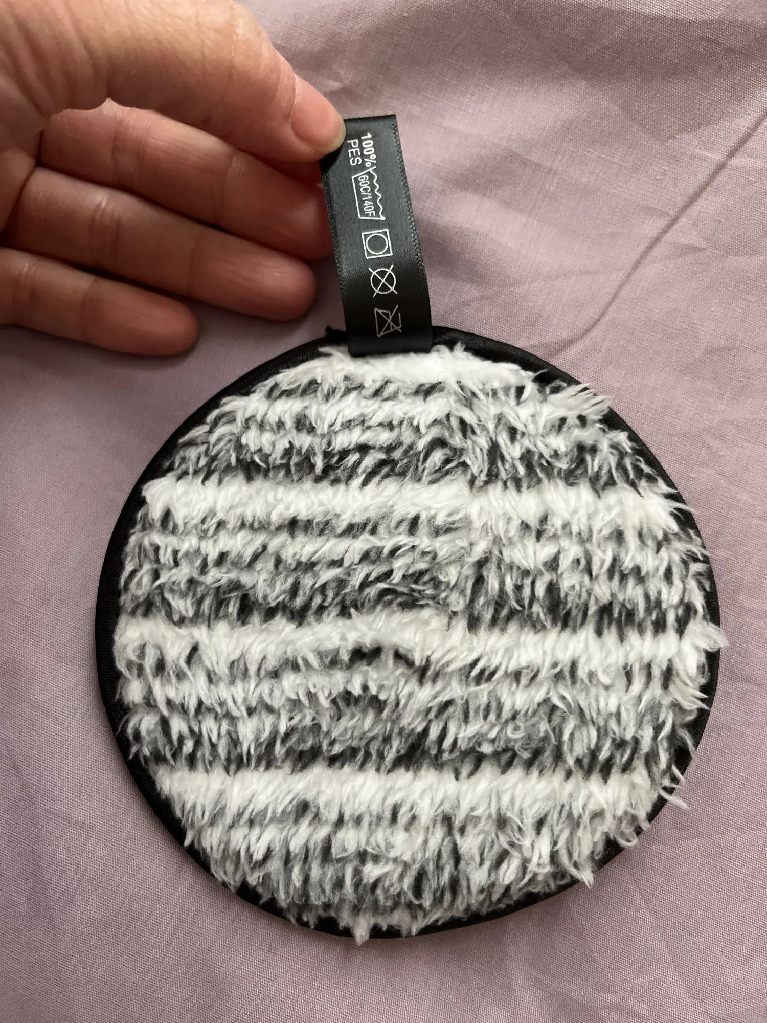 Быстрая доставка. за 3 недели до РБ. товар как на фото. 11 см в диаметре. очень удобно держать в руках для использования. под мехом внутри губка. подходит для умывания лица и шеи. мех мягкий.
