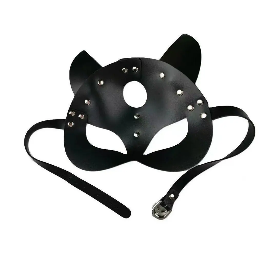 Сексуальная кожаная маска кошки БДСМ фетиш голова кошки черные полуглаза Косплей лицо для взрослых экзотические аксессуары маска для Хэллоуина маскарада Вечерние
