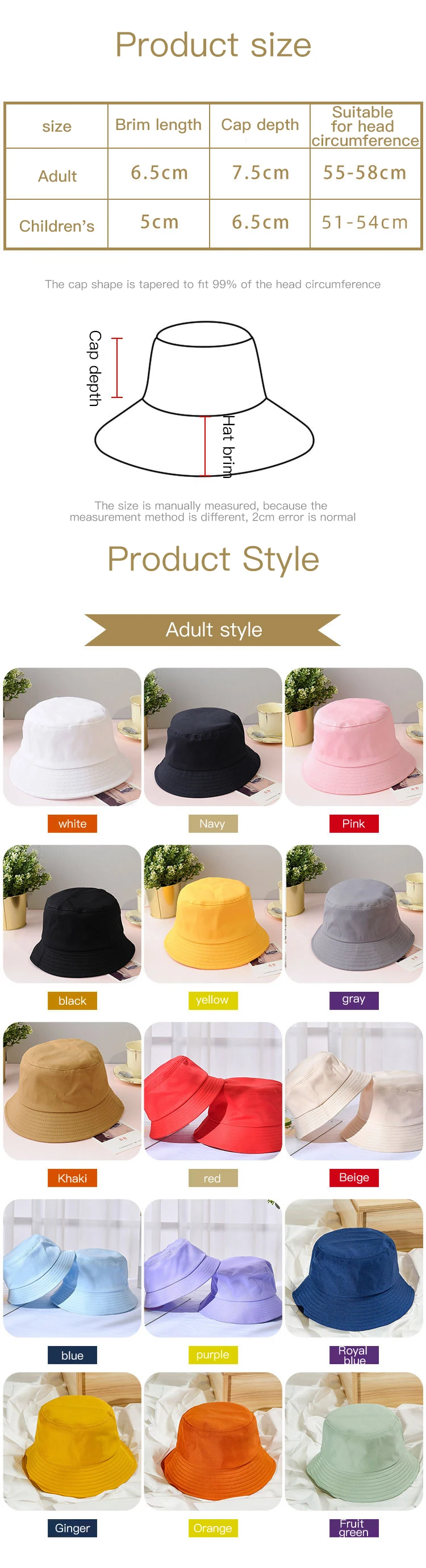 Панама шляпа-ведерко кепки унисекс, Солнцезащитная шапка карамельны...