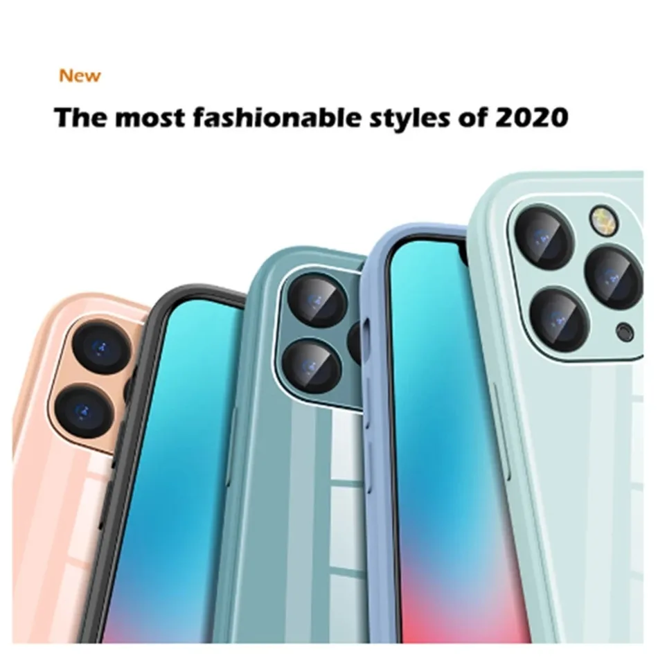 Жидкий квадратный чехол из закаленного стекла для iPhone 11 12 Pro ...