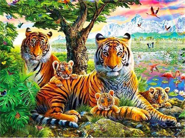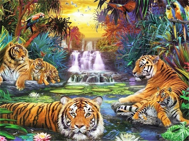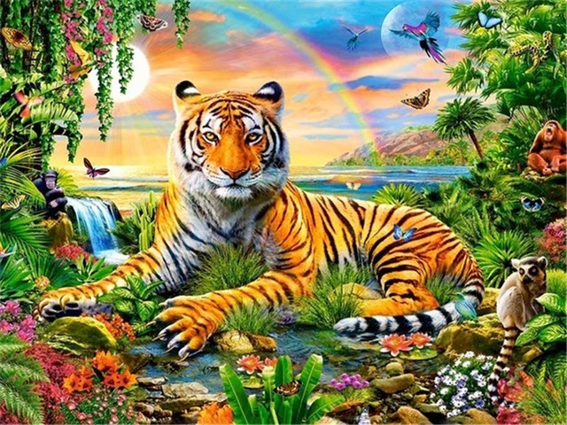 5D алмазная живопись, пейзаж, животные, тигр, алмазная вышивка, моз...