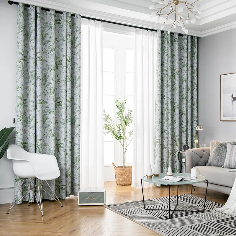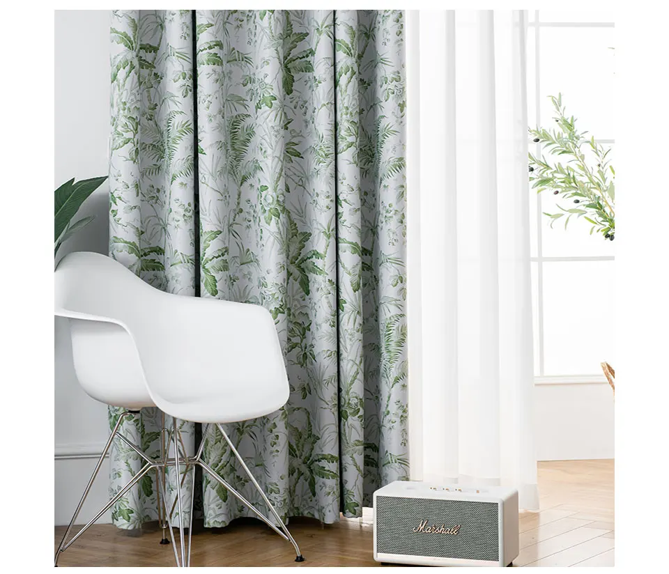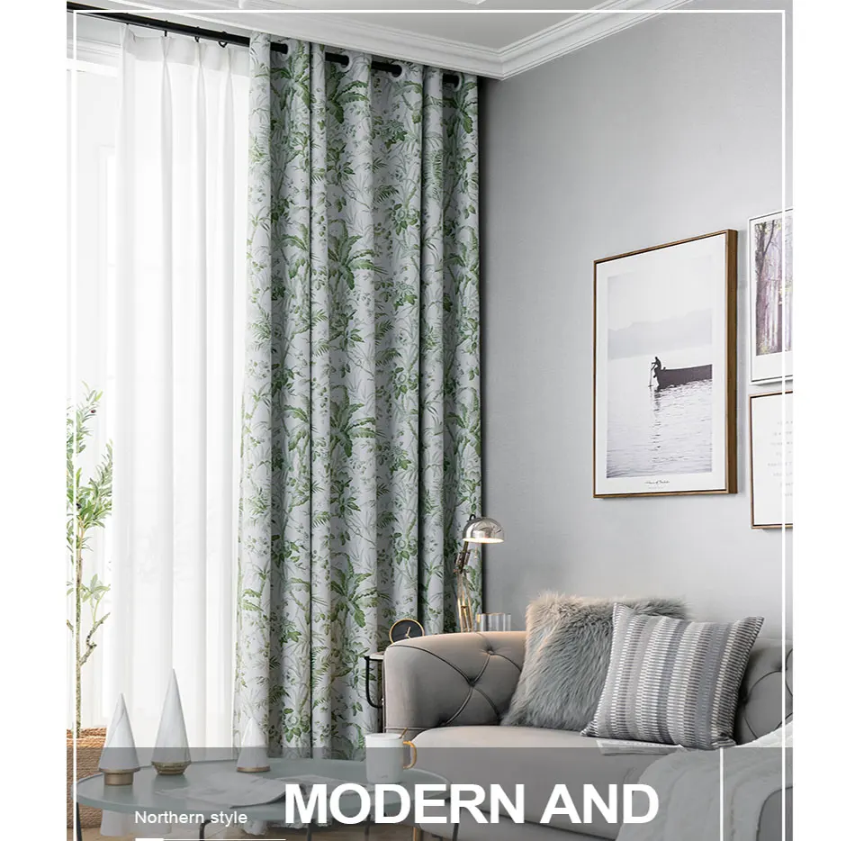 Шторы блэкаут с зелеными листьями, Современные тканевые занавески из плотной ткани для гостиной, спальни, готовые панели