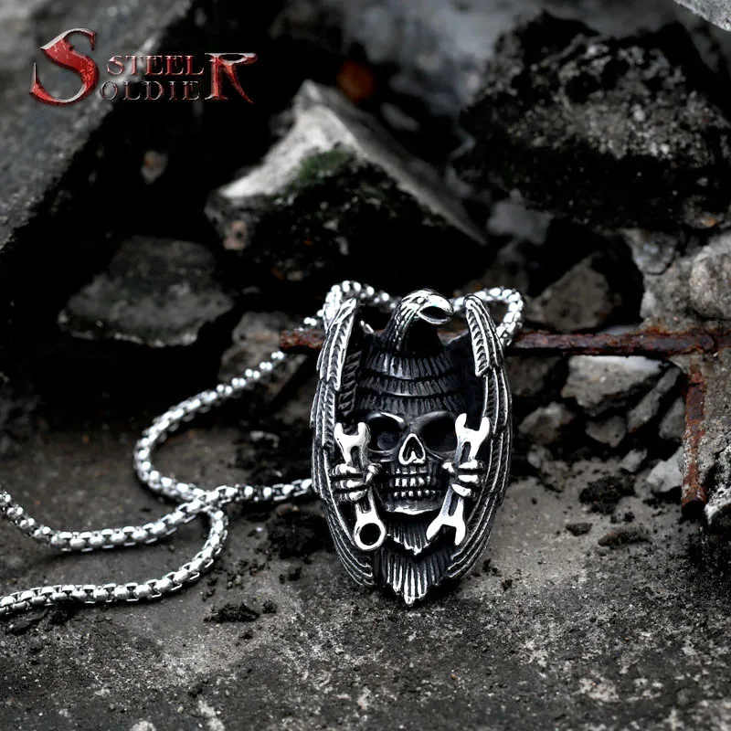 Сталь солдат, панк-рок, череп, кулон ожерелье ювелирные изделия Гео...