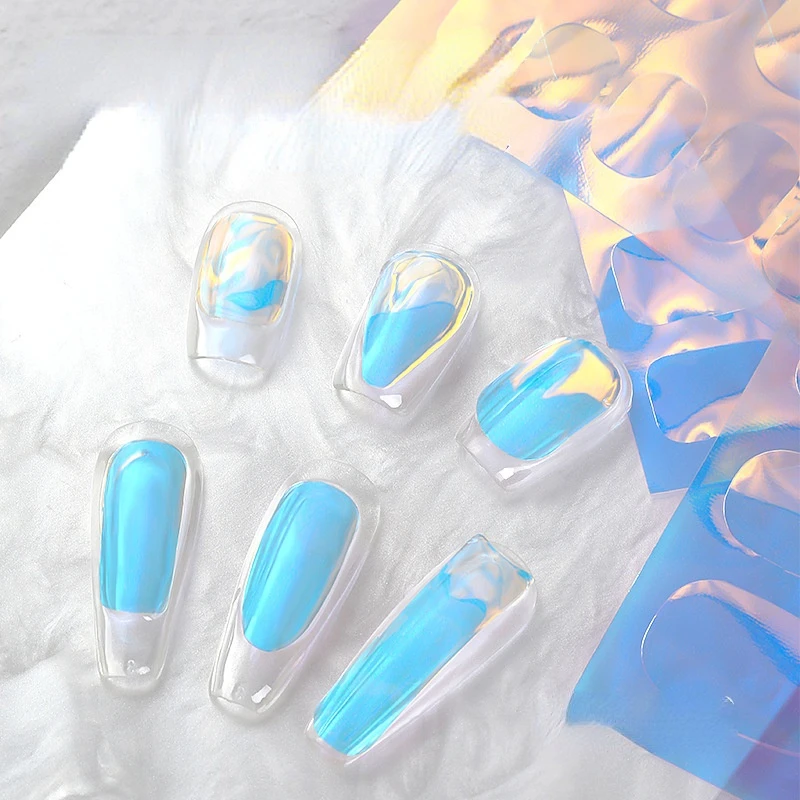 Новые наклейки для ногтей Aurora, самоклеящиеся наклейки, лазерные конфеты, модная стеклянная фольга, кубик льда, маникюр, искусство ногтей, искусство 3D